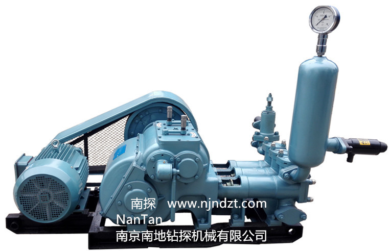 BW-250型泥漿泵為臥式三缸往復單作用活塞泵,該泵具有兩種缸徑和四擋變量,大缸套用于1000米大口徑鉆機配套,小缸套用于1500米小口徑鉆機配套。 。主要用于與巖芯鉆機配套輸送泥漿,也可用于其他方