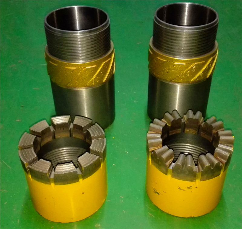 取芯鉆桿鉆具是一種不提鉆而從鉆桿內(nèi)撈取巖芯的鉆井工具。它具有鉆進效率高,巖心采取率高,鉆頭壽命長,勞動強度小等優(yōu)點。隨著鉆孔深度的加深,其優(yōu)勢更為明顯。整套鉆具包括鉆具總成、鉆桿、加厚鉆桿、提引器、打撈器、夾持器、電動或柴油機驅(qū)動繩索絞車和金剛石自由鉗等部件。