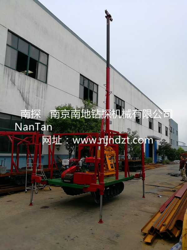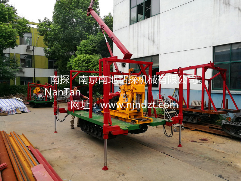 該履帶底盤承載重量達4T,可以裝載各種小型鉆機,如:XY-1-1、XY-1、XY-1A、XY-1A(YJ)、XY-1A-4、XY-1A-5、XY-1B、XY-1B-1、XY-1B-2、XY-200、XY-200(YJ)、XY-200B、XY-200B-1、XY-200B-2、GXY-1系列、GXY-2Q、GXY-200B、GYQ-200、GYQ-200A、GK180、GXY-2K、GXY-2C等100-300米鉆機,并可同時載BW160、BW160A、BW200BW200A型泥漿泵,具有伸縮式液壓起落鉆塔、行走方便、上下汽車安全等特點,廣泛適用于公路、鐵路、水電、橋梁、壩基等的工程地質(zhì)勘察、地質(zhì)巖芯鉆探、物理勘察、小型灌漿孔、爆破孔、水井孔和空調(diào)孔的鉆進。