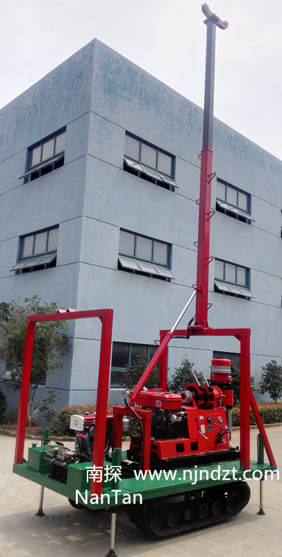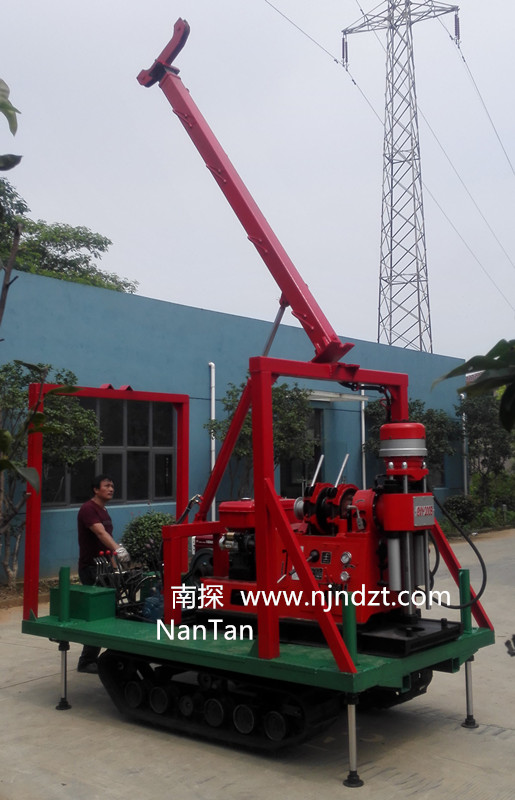 該履帶底盤承載重量達4T,可以裝載各種小型鉆機,如:XY-1-1、XY-1、XY-1A、XY-1A(YJ)、XY-1A-4、XY-1A-5、XY-1B、XY-1B-1、XY-1B-2、XY-200、XY-200(YJ)、XY-200B、XY-200B-1、XY-200B-2、GXY-1系列、GXY-2Q、GXY-200B、GYQ-200、GYQ-200A、GK180、GXY-2K、GXY-2C等100-300米鉆機,并可同時載BW160、BW160A、BW200BW200A型泥漿泵,具有可調(diào)伸縮式液壓起落鉆塔、行走方便等特點,廣泛適用于公路、鐵路、水電、橋梁、壩基等的工程地質(zhì)勘察、地質(zhì)巖芯鉆探、物理勘察、小型灌漿孔、爆破孔、水井孔和空調(diào)孔的鉆進。
