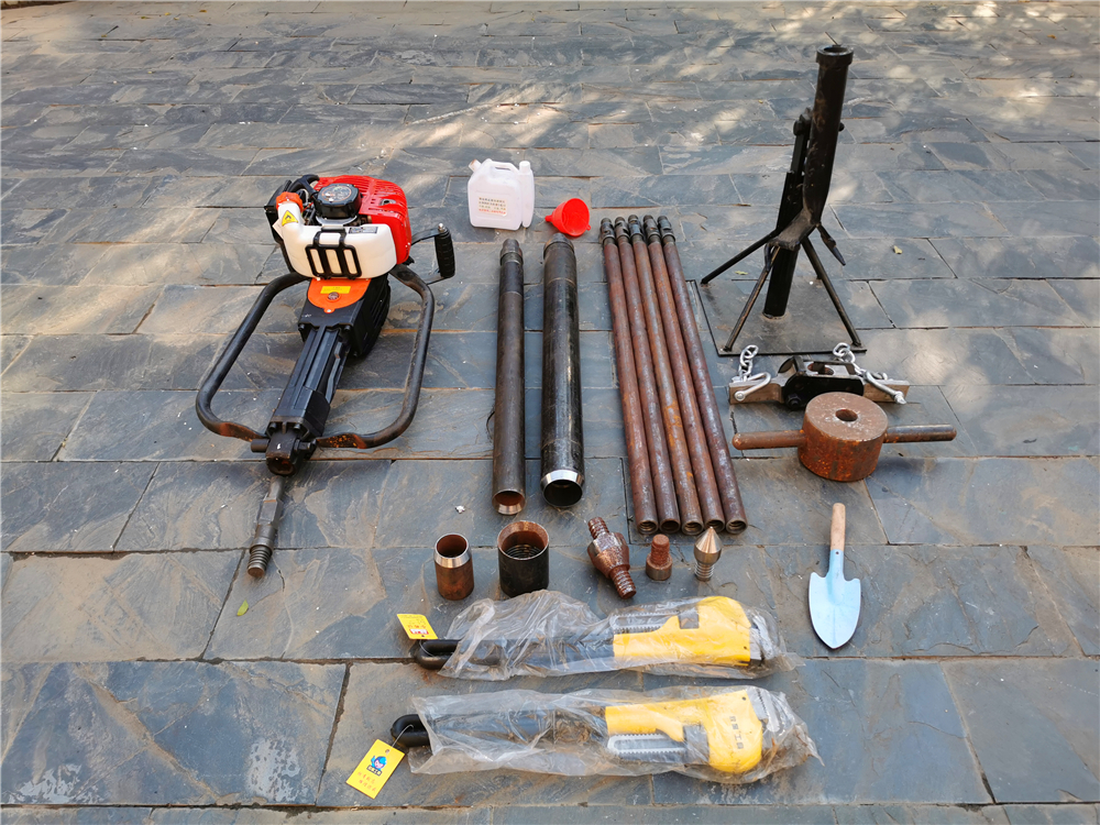 1、鉆機:含汽油發(fā)動機、沖擊鉆進裝置。