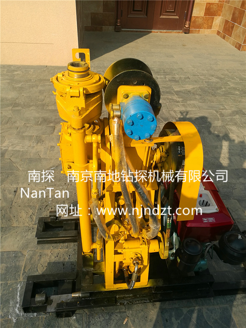 NTQZ-50B型鉆機(jī)是一種具有油壓給進(jìn)的輕便鉆機(jī),配置移位底座、液壓卷?yè)P(yáng)機(jī)、4.5米高三角架鉆塔。額定鉆孔深度50米,最大開(kāi)孔直徑允許為110mm,終孔直徑為75mm,孔徑46-200mm配套鉆進(jìn)深度根據(jù)地層情況而定。既可以旋轉(zhuǎn)、 沖擊鉆進(jìn)取土取芯樣,也可以旋轉(zhuǎn)鉆進(jìn)不取心鉆孔,比如鉆孔灌漿、引孔等。